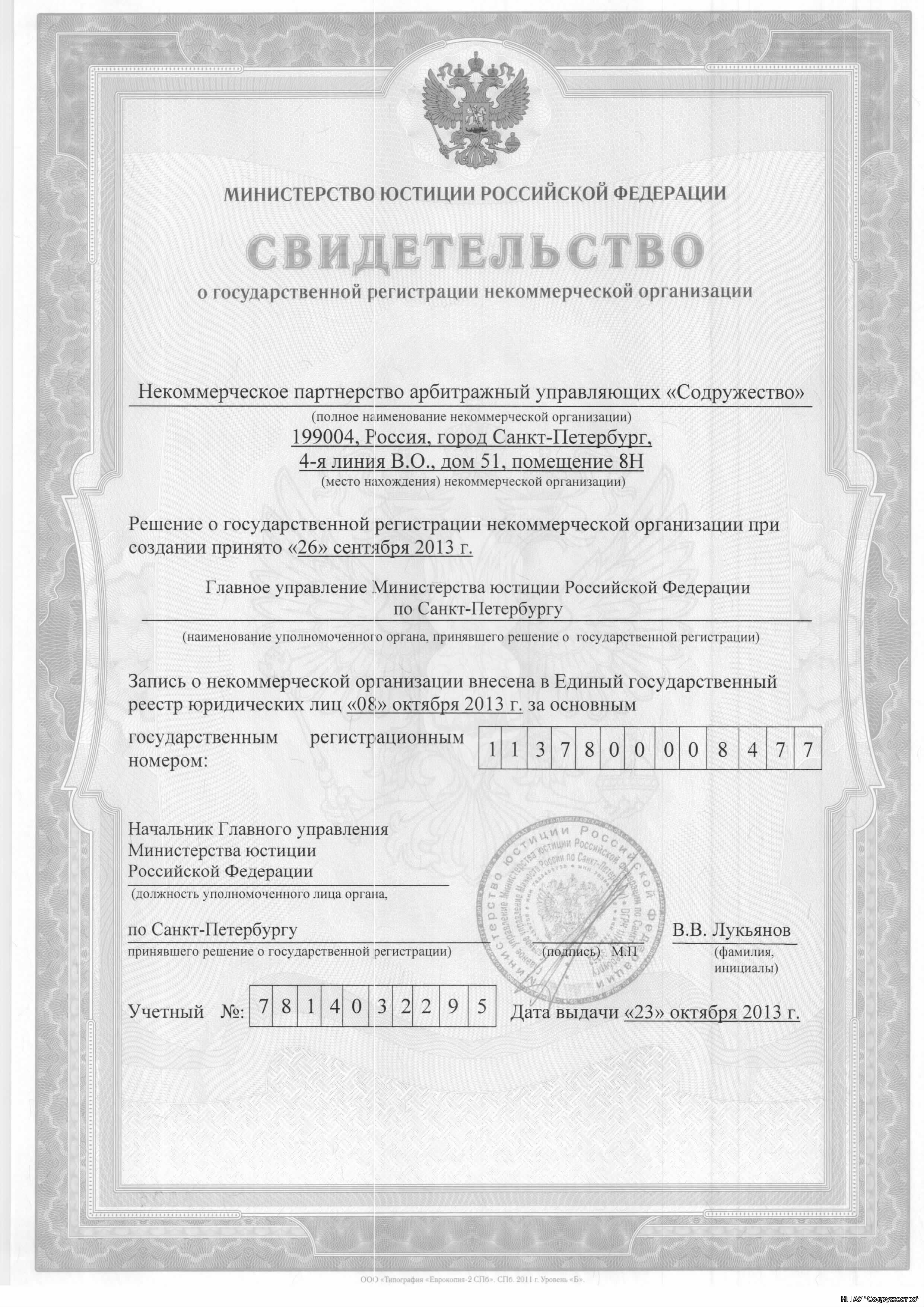 Свидетельство о регистрации Партнерства от 23.10.2013г.